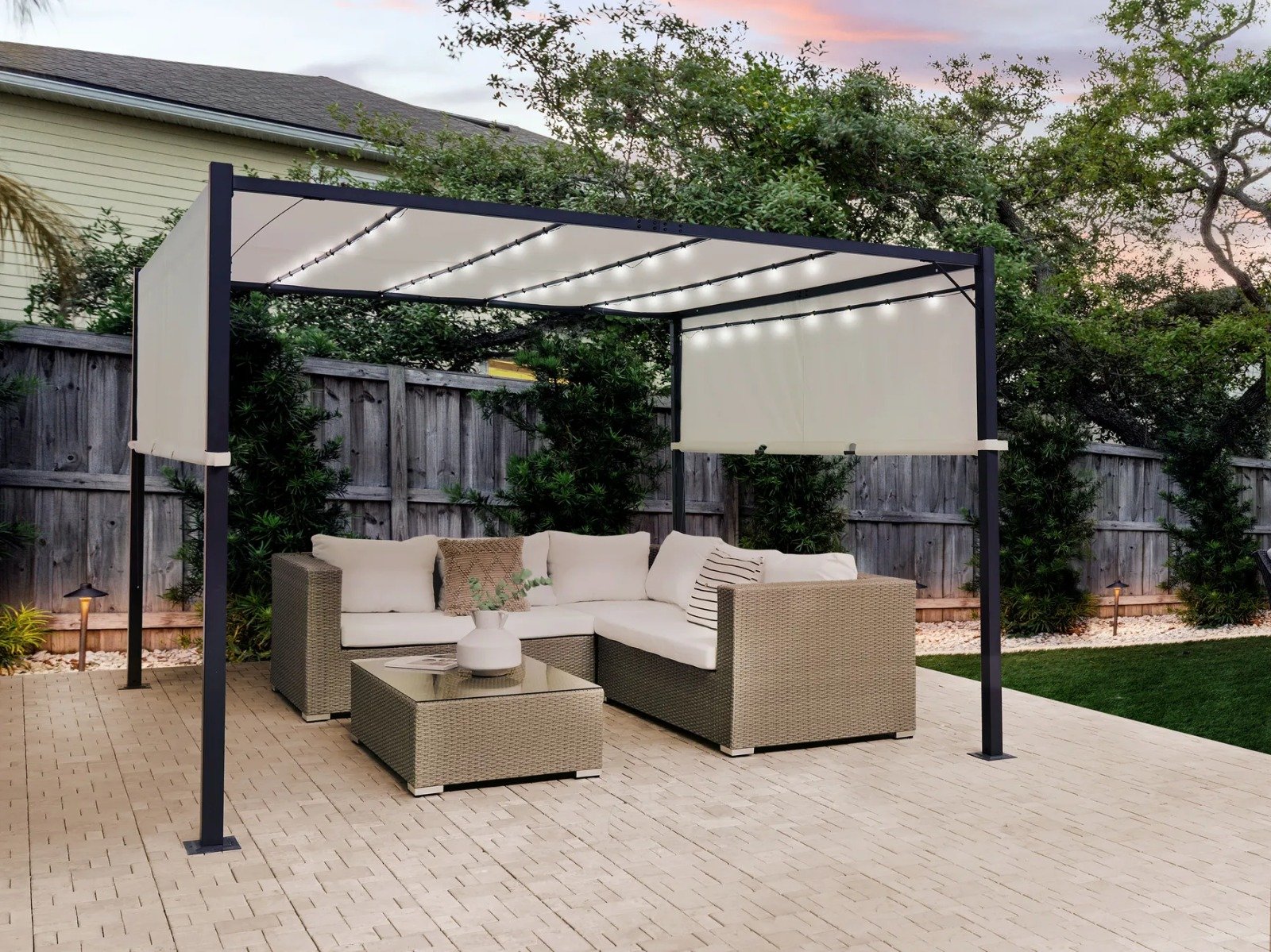 Este gazebo es la solución ideal para disfrutar de tu espacio exterior, de día y de noche. Crea un lugar de sombra elegante y práctico para tus muebles de jardín o tu comedor exterior.