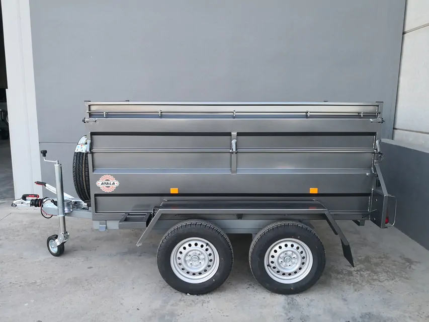 Estás viendo: Remolque basculante hidráulico de 2 ejes con soporte lateral – Ruedas en el exterior El precio original era: €3,780.00.El precio actual es: €1,935.00.