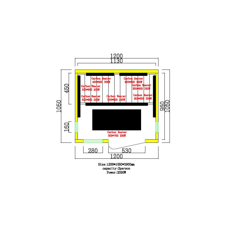 Sauna de infrarrojos con paneles de carbono 2050W 2 asientos
